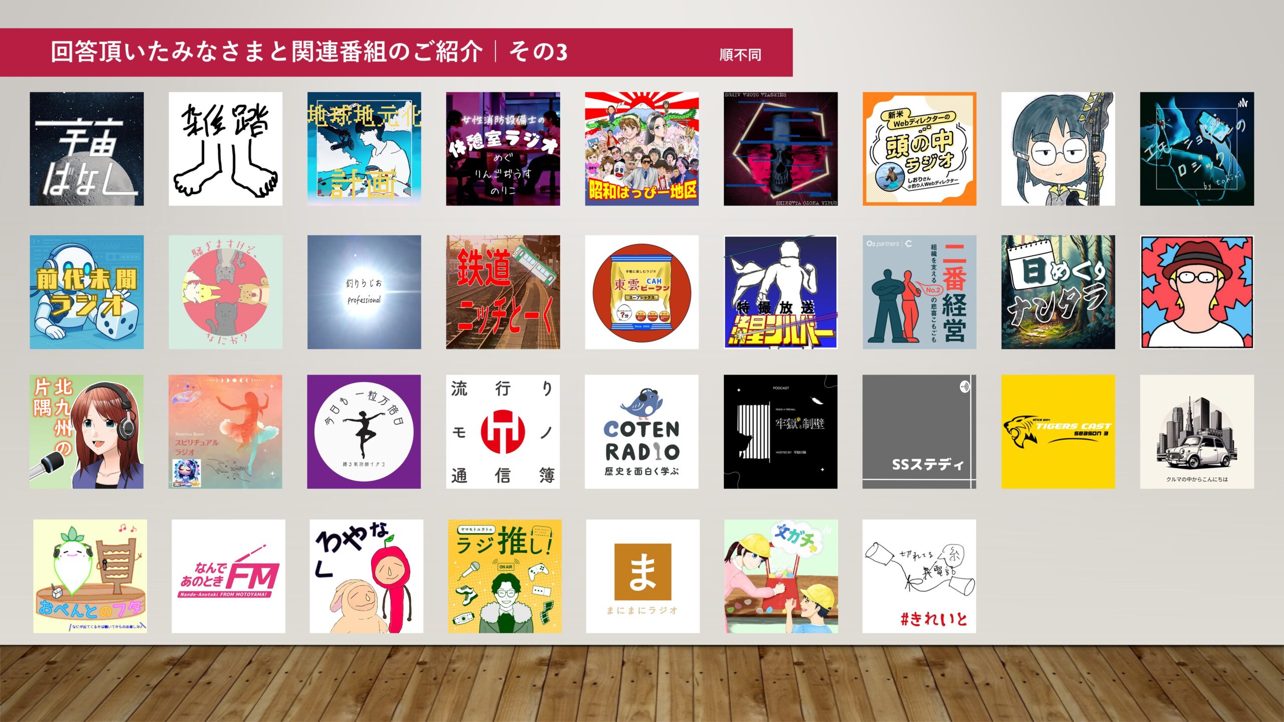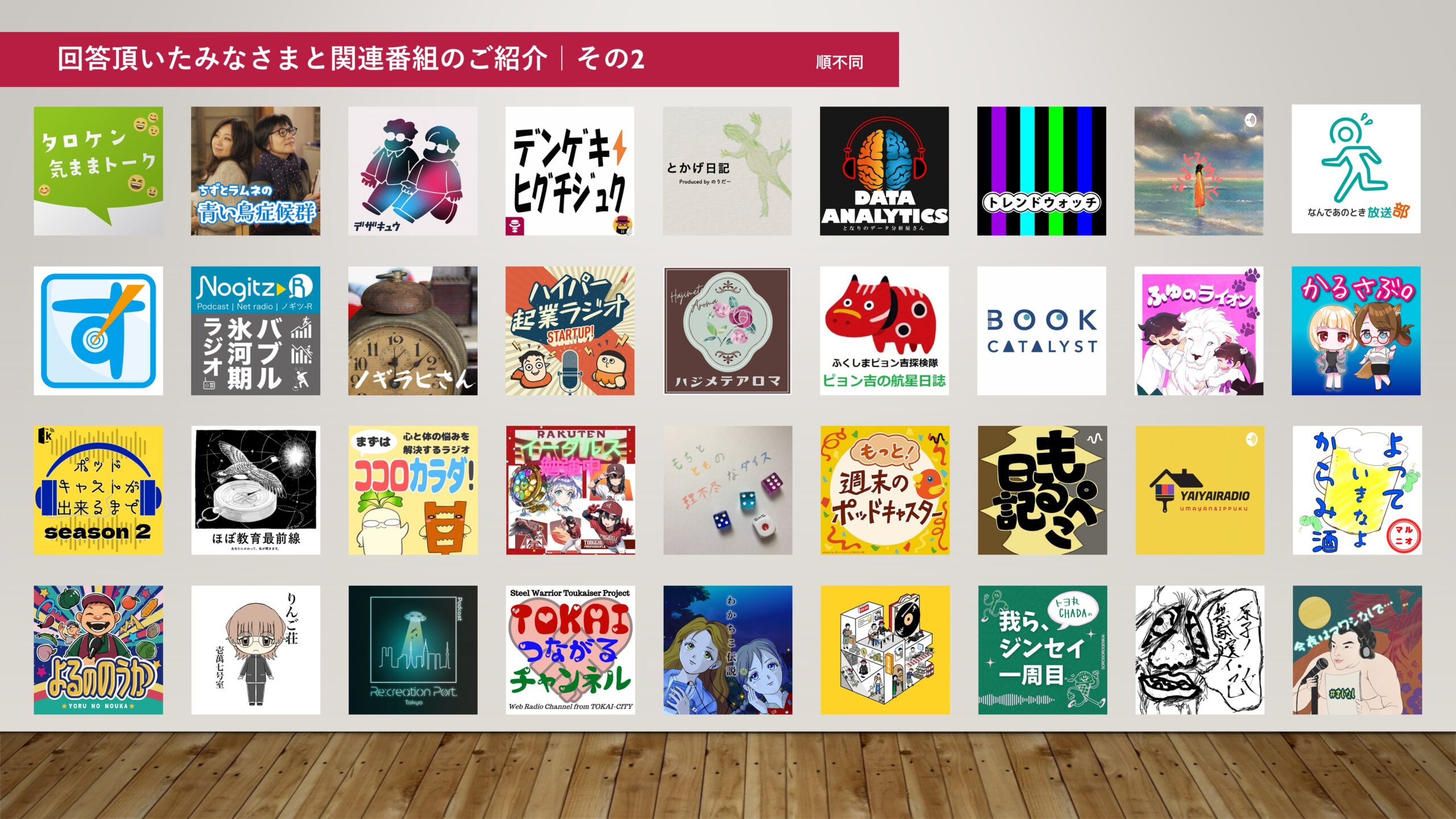 回答にご協力頂きました、ポッドキャスター・音声配信者の皆様、本当に有り難うございました。